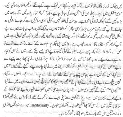 In the later part of his professional career as a writer, Ashfaq Ahmed turned to spiritualism and started a programme on PTV by the name of "Zawiya". This programme revolved around things that we so easily ignore in our life and still lament that we have been wronged and did not get what should have been our due share. Having seen these programmes, one realizes the true meaning of life. Two books have published containing each programme and those who missed watching these programmes or found these boring or too spiritual, must now read these books and would find a change in themselves, provided they understand what the writer has tried to explain in very simple and understandable words. While reading the first book, one should concentrate on the chapter "Diye sey diya (Given from the "Given"). Two excerpts are scanned and given down below which change one's life if really pondered upon.