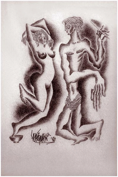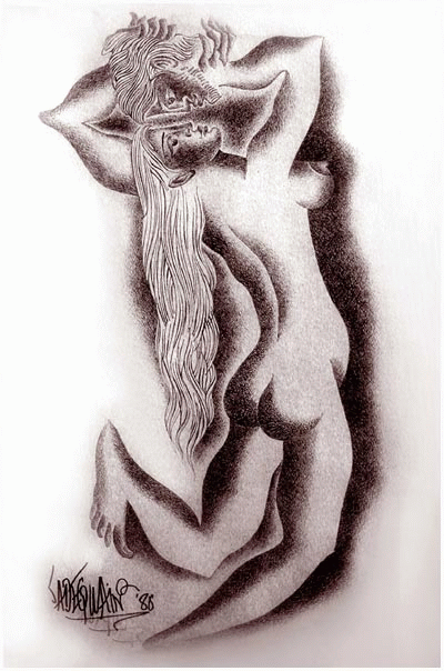 rose to distinction by painting human sketches, mostly angular and in nude. This