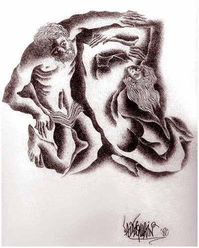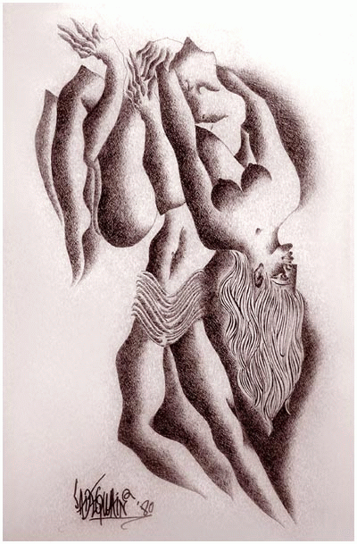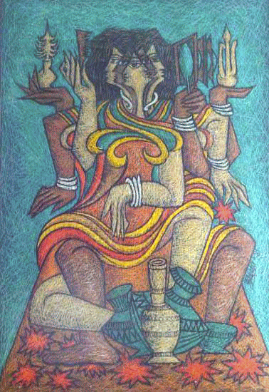 figures were generally linear and elongated. Sadequain usually coloured his paintings in purple,